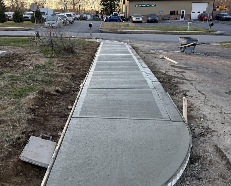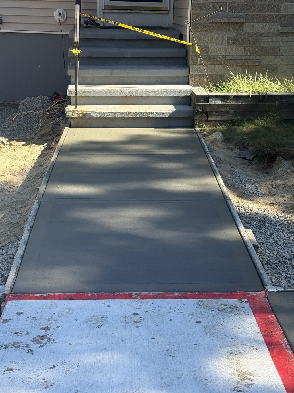 We install durable concrete walkways that improve curb appeal and provide safe, long-lasting access. Built on properly prepared bases, our walkways are made to handle New England weather and heavy use.